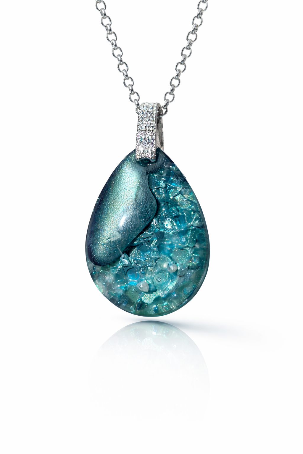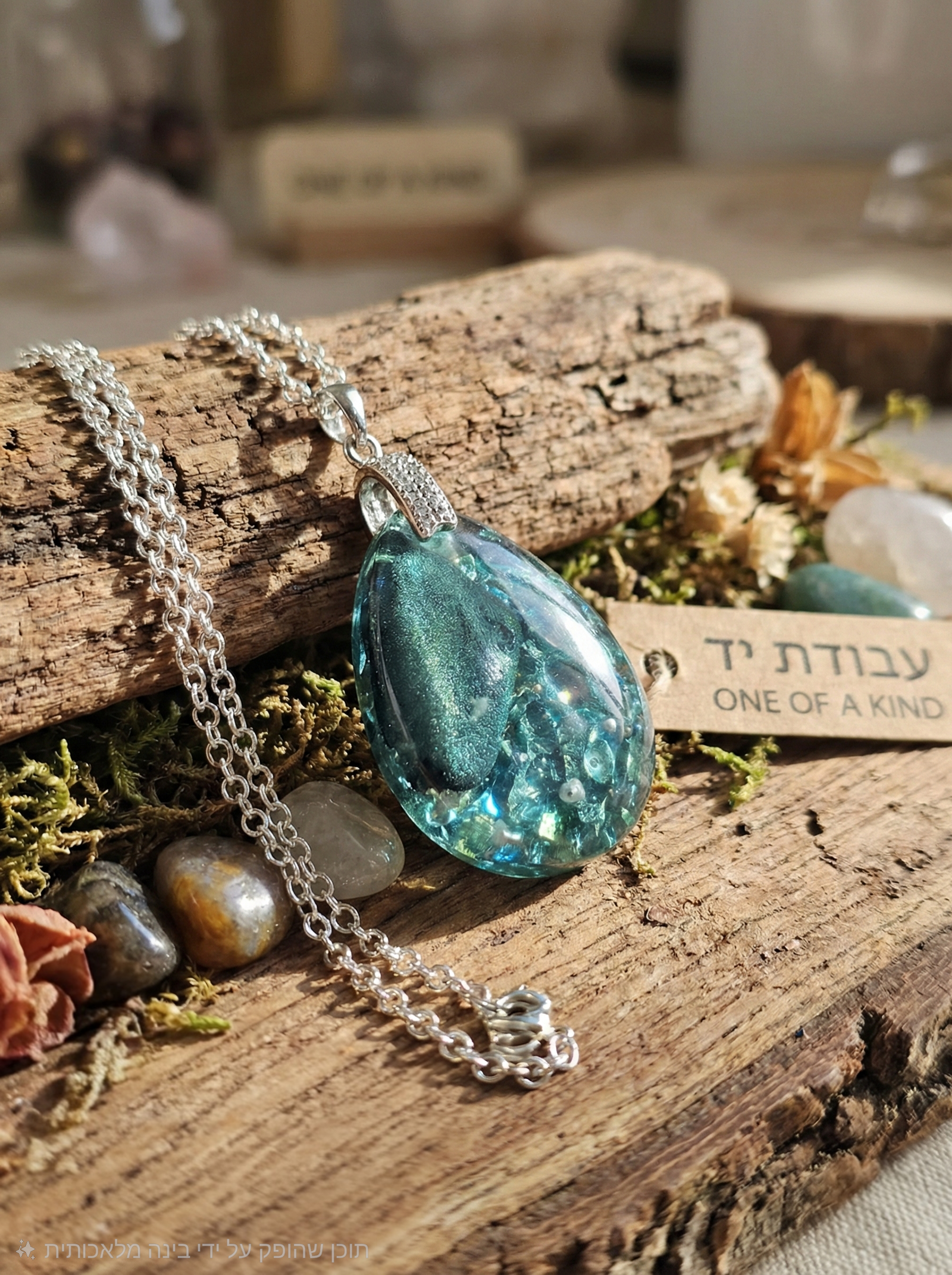 התליון נוצר בשכבות ליצירת עומק, ברק וטקסטורה טבעית שמשתנה בזוויות אור שונות.